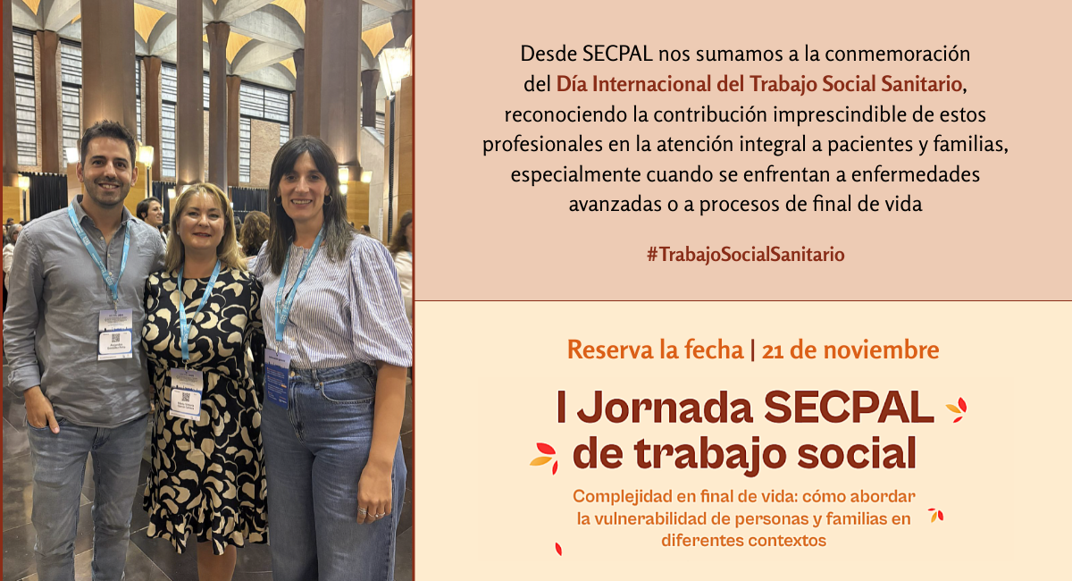 Desde SECPAL nos sumamos a la conmemoración del Día Internacional del Trabajo Social Sanitario (TSS), reconociendo la contribución imprescindible de estos profesionales en la atención integral a pacientes y familias, especialmente cuando se enfrentan a enfermedades avanzadas o a procesos de final de vida.